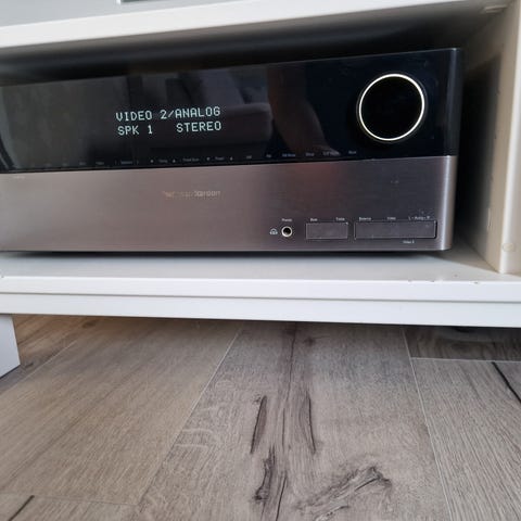 Siisti ja täysin toimiva stereovahvistin, jonka mukaan tulee kaukosäädin ja ohjekirja.