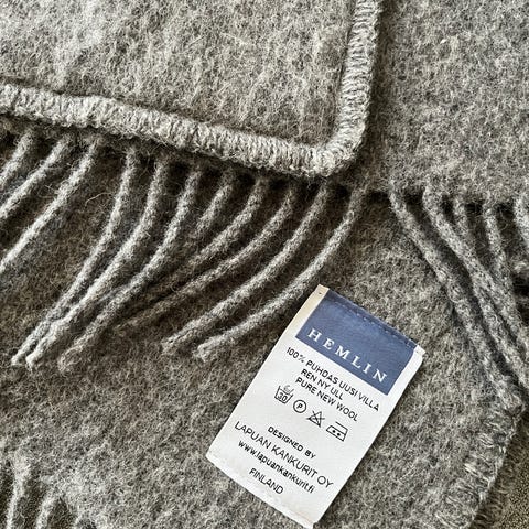Elina Heleniuksen suunnitteleman, ylellisen pehmeän huovan kuviointi muodostuu kahden erivärisen langan yhdistelmästä, ja sen ilmettä täydentävät hapsureunat. Revontuli-huopa on valmistettu mulesing-vapaasta eteläafrikkalaisesta mohairlangasta ja uusiseelantilaisesta villasta Liettuassa sijaitsevalla ompelimolla.
