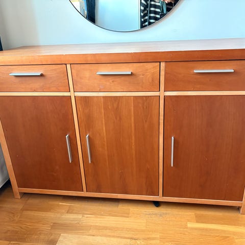 Myydään tumma mäntypuinen lipasto/senkki, jossa messinkiset vetimet. Muistaakseni Ikean tuotantoa. Joitain kulumisen jälkiä näkyvissä. Nouto Vaajakoski, Kotimäki. Voidaan auttaa kantamisessa. Leveys 165cm, korkeus 90 cm, syvyys 49cm.