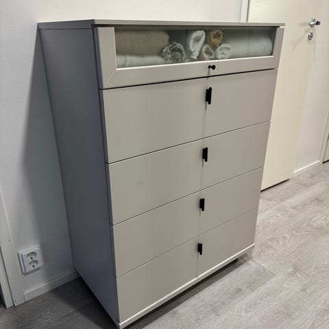 Myytävänä valkoinen lipasto. Käytön jälkiä on.