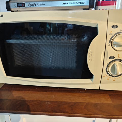Ainakin reilu 5v vanha mikroaaltouuni. Toimiva muuten mutta valo palanut sisältä. Kuulema voi itsekin suht helposti vaihtaa jos haluaa.