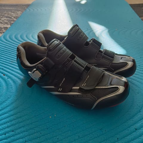 Myydään Shimanon maantiepyöräilykengät koko 47. Vähän käytössä tullutta kulumaa pohjassa, kuitenkin hyvässä käyttökunnossa. Myydään ilman klosseja.