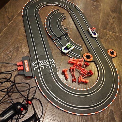 Kerran käytetty mario kart autorata. Hyvin toimii. Paristot mukana. Turvallinen, ei verkkovirtakytkentää. Ovh ilman paristoja halvimmillaan 30e