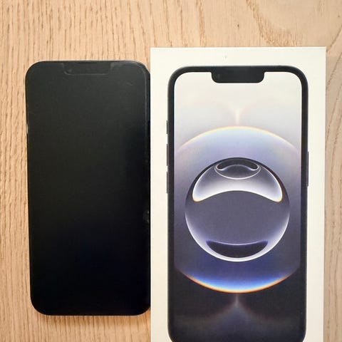 Myyntiin erinomaisessa kunnossa oleva musta iPhone 16.