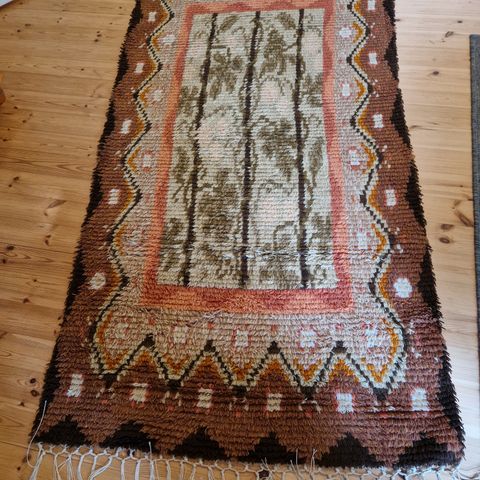 Koko 110cm x 167cm. Erinomainen kunto, ei hajuja, tahroja tai likaa. Eläimetön ja savuton talous. Kauniit värit ja siistit hapsut.