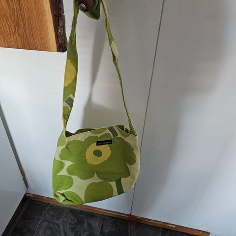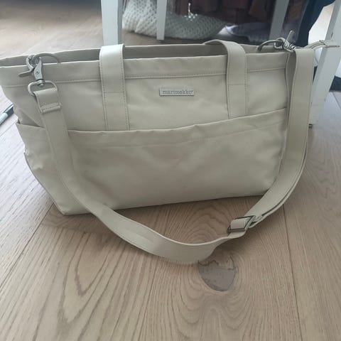 Marimekko kangaslaukku. Laukku on valmistettu kankaasta ja siinä on punasävyinen raidallinen kuosi. Kaksi olkahihnaa mahdollistavat kantamisen olalla tai kädessä. Laukussa vetuketjullinen ja sisällä vetuketjullinen tasku. Sopii arkilaukuksi tai ostoskassiksi, ja sen tilava sisäosa tarjoaa säilytystilaa päivittäisille tavaroille. Laukku on valmistettu Suomessa.