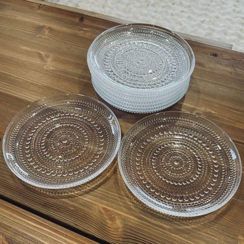 Iittalan Kastehelmi-sarjan vaaleansiniset lasilautaset