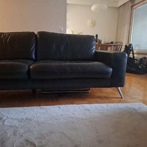 Muutaman vuoden vanha konjakinvärinen nahkasohva. Ostettu Maskusta, hinta n. 2000€