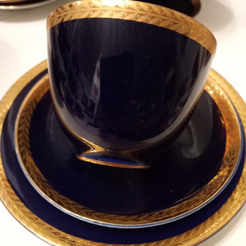 Myynnissä Lomonosovin posliini punaisella LFZ leimalla, teekuppisetti, erinomaisessa kunnossa. 1/25