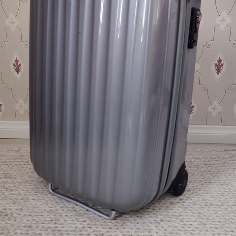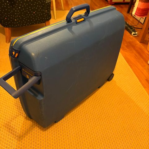 Kova muovinen kuori ja sininen väri. Laukussa on pyörät ja vetokahva helpottamaan kuljettamista. Sisäpuolella on kiristysremmit ja erillinen sisätasku, jotka auttavat pitämään tavarat paikoillaan matkustettaessa. Koodilukitus.