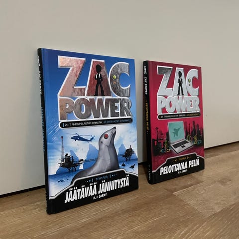 Zac Power -kirjasarja, neljä kovakantista nuortenkirjaa. Mukana osat: Jäätävää jännitystä, Syvissä vesissä, Pelottavaa peliä ja Myrkkysaari. Kirjat sopivat erityisesti alakouluikäisille lukijoille ja sisältävät seikkailu- ja vakoiluaiheisia tarinoita. Kaikissa kirjoissa on värikäs kansikuva ja teksti on suomenkielistä.