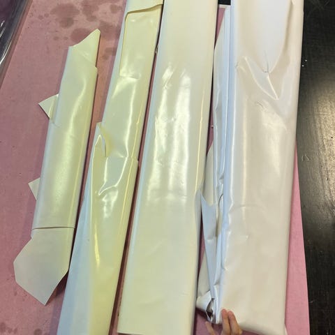 Läpinäkyvä muovi. Leveys mitattuna noin 120 cm. Materiaali kirkasta muovia, soveltuu esimerkiksi askarteluun, suojaukseen tai erilaisiin tee se itse -projekteihin, joissa tarvitaan joustavaa, läpinäkyvää muovipintaa.