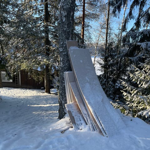 Kokeillaan tuuria. Tarvetta ois noin kahdelle kuvassa näkyvälle panelille. Ei tarvi olla koko pitkiä lyhemmätki palat käy. Väri valkoinen saarni. Jos on jämiä jonkun muunkin kuvioisesta niin saa tarjota kunhan on tuollaista pitkä välistä mallia, että sopis yhteen ja sais paikan tehtyä.