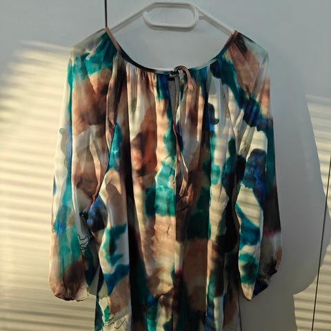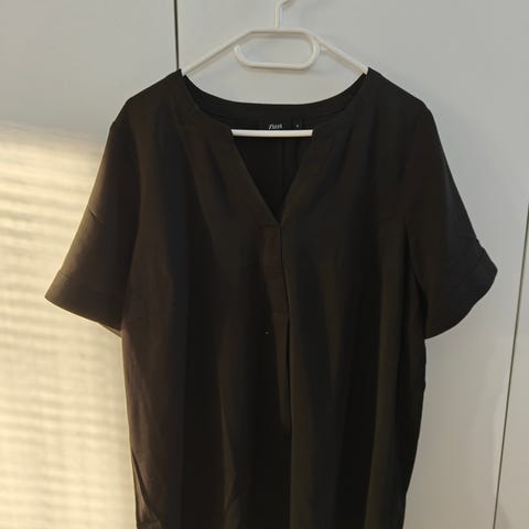 V-pääntie, kyynärpäähän ulottuvat hihat ja rypytetty helma, joka tekee puserosta kauniin pallomaisen. Puserossa on 50 % LENZING™ ECOVERO™ -viskoosia, joka tekee puserosta luonnollisen pehmeän ja saa sen laskeutumaan kauniisti.