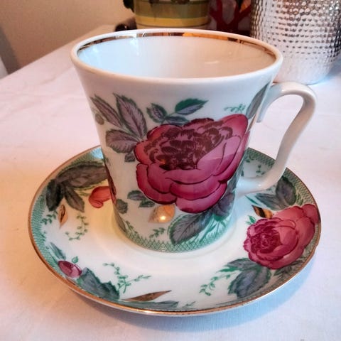 Lomonosov kaakaomuki ja tassi " Vaalea siniset kukat", mukissa kaksi pientä sirua, muuten hyväkuntoinen