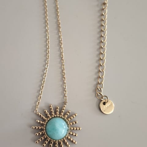 Kaunis kullanvärinen aurinko kaulakoru. Ketjun Pituus 45cm.