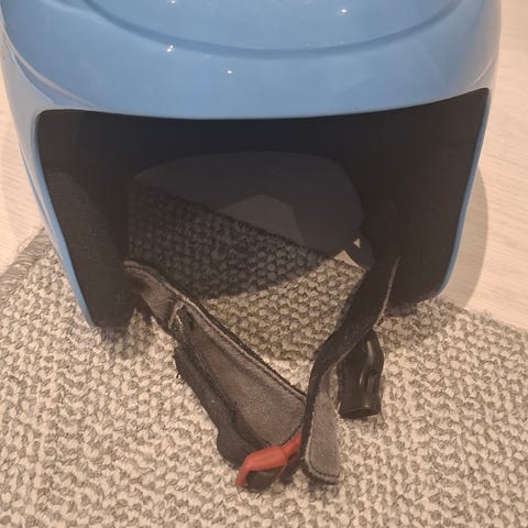Uutena hankitut laskettelukypärä ja lasit. Kypärä mips. Kypärässä kiinni tarrat, joihin voi kiinnittää koristekorvat, lähtee myös irti.