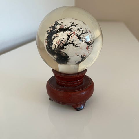 Myynnissä kuvien ehjä sekä siisti lasipallo. Halkaisija on 10 cm. Lähetän ja kulut ovat 7 e, kulkeutuu myös Turkuun ilmaiseksi
