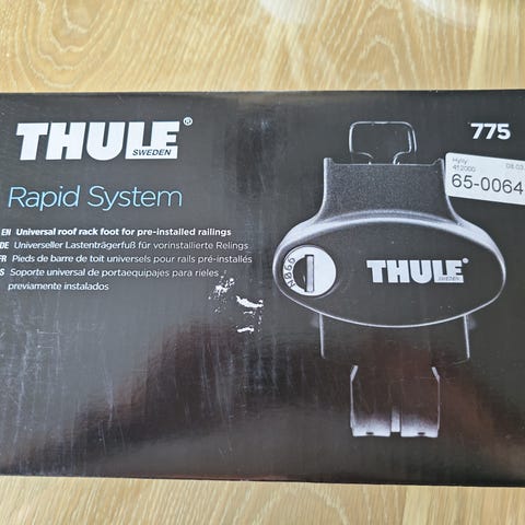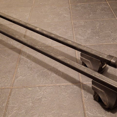 Thule kattotelineen jalat. Sarjassa neljä jalkaa, jotka olleet VW passat variant (b7)2013 kattokaiteissa. Sopivat siis autoihin, joissa normaalikokoiset kattokaiteet/kohokiskot.