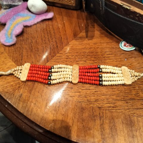 Ostettu väärä koko joten ei nyt käyttöä. Sormuksen koko on 22mm. Käsityönä tehty intiaani reservaatissa.