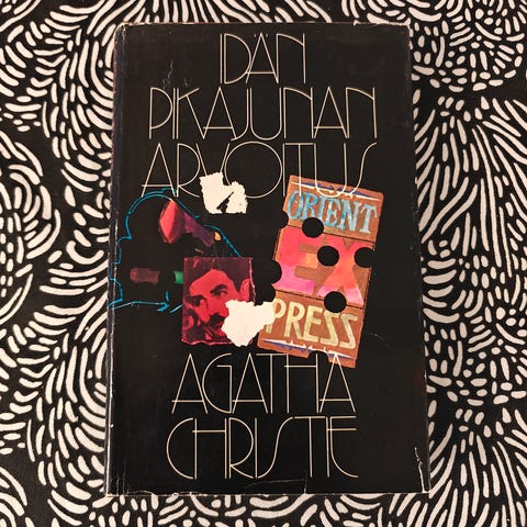 Joan Aiken: Vihan kylvö p.1968, s.264. Agatha Christie: Sininen juna p.1985, s.260, yhdeksäs/tarkistettu painos, 1.painos 1928 - Varjossa auringon alla p.1982, s.256, 1.painos 1941. Mary Collins: Kuolema vaanii sumussa p.1955, s.256. S.S. van Dine: Greenen perheen salaisuus p.1954, s.303, 1. suomenkielinen p.1931. Graham Greene: Kolmas mies ja valheitten talo p.1950, s.204 - Kiveä kovempi p.50 luku, s.288, alkuteos ilmestynyt 1938. Patricia Highsmith: Syvissä vesissä p.1974, s.272. David Hume: Cardby ja poika p.1957, s.261, 3.painos - Cardby ja lohikäärme p.1957, s.237, 1.painos 1938. Hammond Innes: Kummituslentokone p.1963, s.320, julkaistiin ensi kerran vuonna 1951 - Outo maa p.1963, s.324, 1.painos 1962. Michael Innes: Kosta, Hamlet! p.1993, s.360. Judson Philips: Kuuman kesän murhat p.1970, s.166. Ellery Queen: Kämmenen jälki p.1958, s.247. Edgar Wallace: Kuminaamarimiehet p.1975, s.255, 1. suomenkielinen p.1937. Myydään yhdessä hintaan 5e.