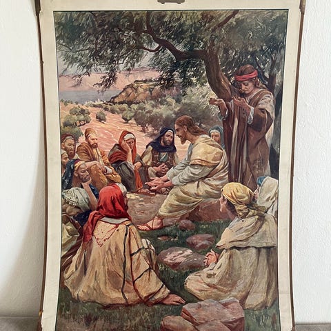 Uskonnollinen opetustaulu Jeesus opettaa rukoilemaan paperijuliste
