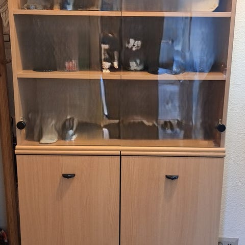 Matala kaapisto, jossa 2 avohyllyä ja 2 ovellista.