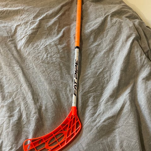 Lasten salibandymaila 55cm, jossa oranssi muovilapa ja musta varsi. Nouto Soukka, Espoo.