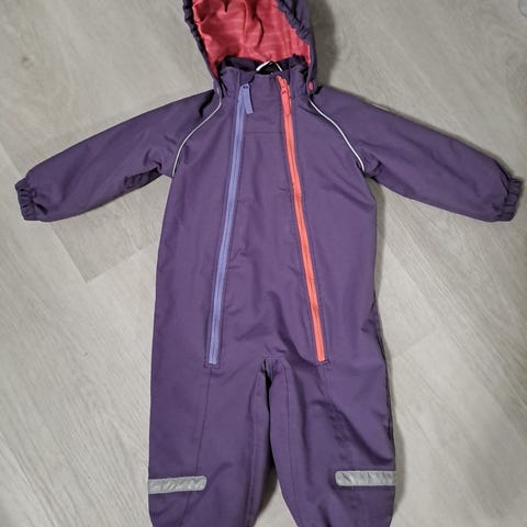 Tosi hyväkuntoinen ja toimiva haalari. Tämä yksilö ehti olla lapsella vain puolisen vuotta käytössä. Aiempi samanlainen rikkoutui vetoketjusta, ja saimme tämän tilalle liikkeestä. Pepussa ja polvissa vähän pehmentymää, jalkalenksut vaihtokunnossa. Nouto tai ToriDiili.