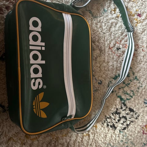 Adidaksen ihana pieni olkalaukku tekonahkaa. Ei ole ollut tosi käytössä, lähinnä kaapissa. Puhdas sisältä ja päältä. Koko 26 x 15 x 6 cm.