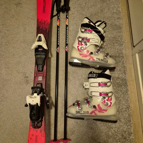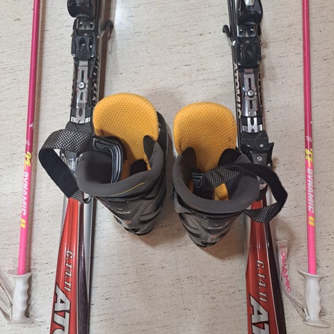Myydään hyvä laskettelusetti, sukset, monot ja sauvat.