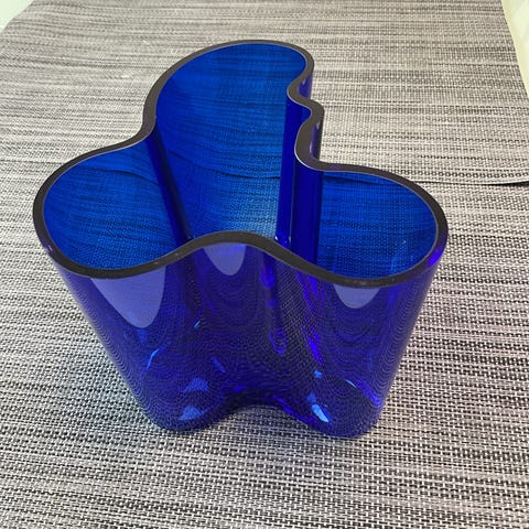95mm kirkas, hyväkuntoinen, aivan pieni nirhauma, tuntuu vain sormen alla. Pohjassa teksti "Alvar Aalto". Hinta 35 eur.