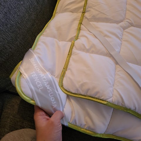 Kaksi settiä. Oma sänky 1,8m leveä, eli ei sovi.