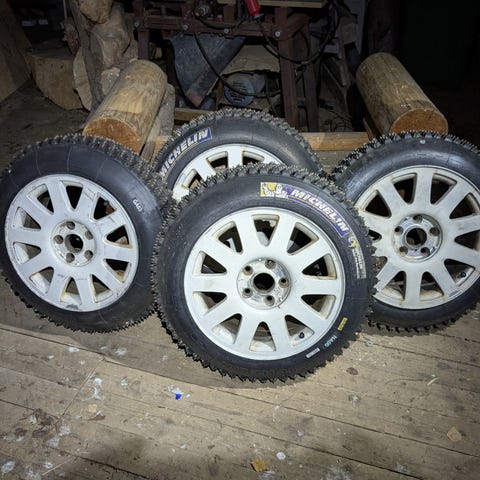 Kisakuntoiset 9/58-13 Michelin NA00 piikkipyörät Peugeotin aluvanteilla. 4kpl. Vain nouto.