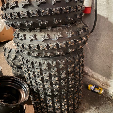 13" Michelin piikkirenkaat vanteilla