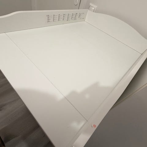 Myydään uudenveroinen IKEAn valkoinen hoitopöytä. Kuvassa oleva beemoon hoitoalusta sisältyy kauppaan.