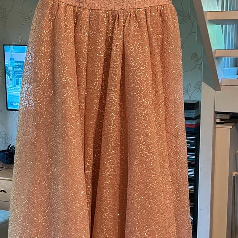 Vyötäröllä leveä kuminauha, tarrakiinnitys ja nauhakiristys mahdollisuus. Vyötärön leveys kuminauhan ansiosta 65-95cm. Vyötäröltä helmaan 85cm ja pinta tylli tulee muutaman sentin alemmaksi 87cn