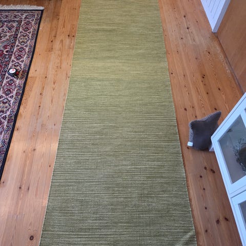 Myydään ehjä räsymatto, jossa muutama tumma tahra. Pesu jää ostajalle.