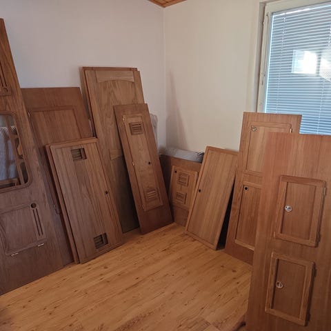 Eri kokoisija tiikkilevyjä joissa on ovia ja irto ovia.