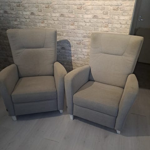 Kaksi uudenveroista mekanismi nojatuolia Iskusta (käytetty nojatuolin erilliskangas päällysteitä sotkasta joten tuolit tahrattomia)