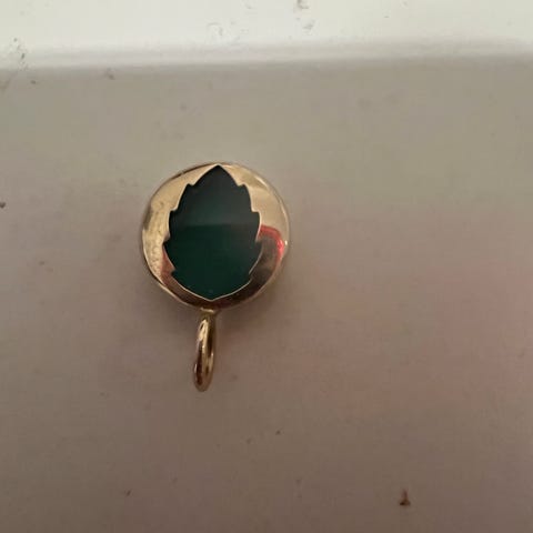 Myydään 585-kultainen lyyrasymbolilla varustettu pinssi.