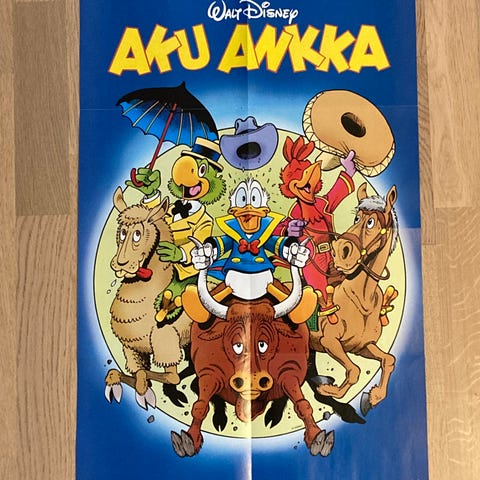 Reunoissa muutamia pieniä repeymiä, pieni tahra "walt disney"-tekstin yläpuolella. Yleiskuva hyvä. 40x60cm