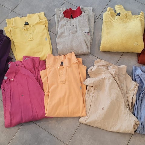 Miesten vaatepaketti kokoa L, eri merkkejä Ralph Lauren, Tommy Hilfiger, kappa.