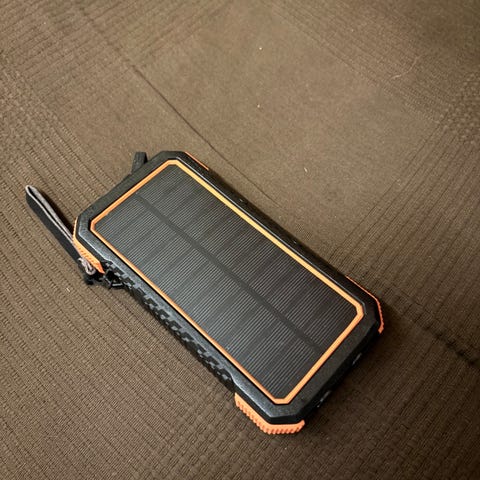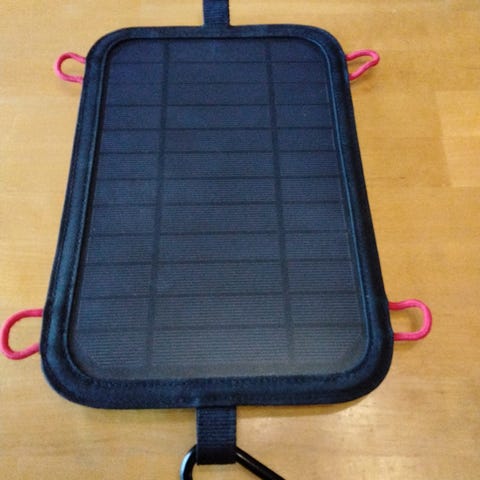 Aurinkokennolaturi 2 x usb, 1 x usb-c ja 12v. Koko 22 x 18 cm.