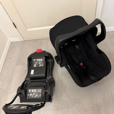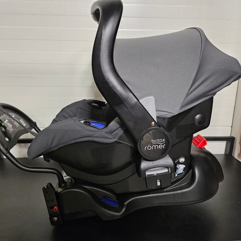 Turvakaukalon, käytetty 2 lapsella. Halutessaan saa jalustan (kääntyvä). Jalusta saanut kolhun pudotessaan metrin korkeudelta.