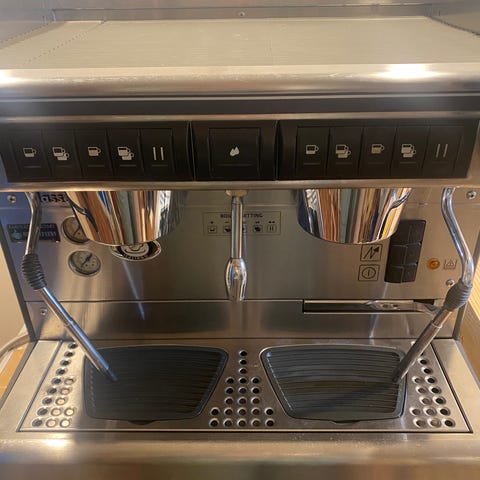 Rancilio classe 7 espressokone ja erillinen Rancilio-kahvimylly. Espressokoneessa on kaksi gruppopäätä, höyrysuutin maidon vaahdottamiseen, kuppiritilä sekä yläosassa kuppilämmitin. Rungon materiaali on ruostumaton teräs. Kahvimyllyssä on papusäiliö ja säädettävä jauhatus. Sopii espresson ja muiden kahvijuomien valmistukseen kotona tai pienessä ammattikäytössä.