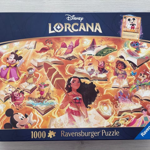 Ravensburger Disney Lorcana -palapeli, jossa on 1000 palaa. Kaikki palat tallessa muovipussissa.