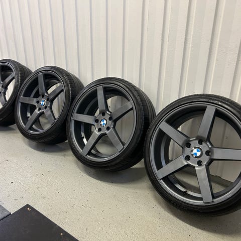 Iso keskireikä ja soviterenkaat paikalla missä 65,1mm keskireikä. Olleet portterin alla. Yhdessä vanteessa vähän jälkiä. Renkaat jo ehtoopuolella.