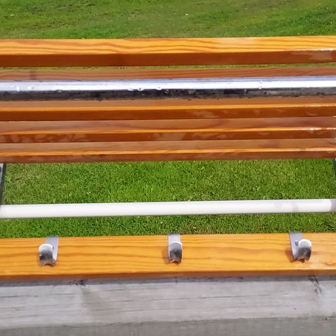 Kullan värinen puuta oleva pystynaulakko. Tukeva, hyväkuntoinen. Muutamia naarmuja. Korkeus noin 185cm ja alajalkojen halkaisija 55cm. Vain nouto.