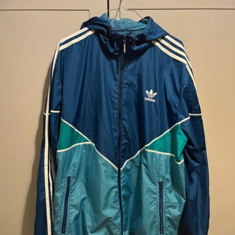 Adidaksen tuulitakki koko L. Takin etu ja takapuolella adidaksen iso valkoinen logo. Takki ankkurissa, nouto/lähetys sovitusti. Hinta 25e. Käteinen/MP